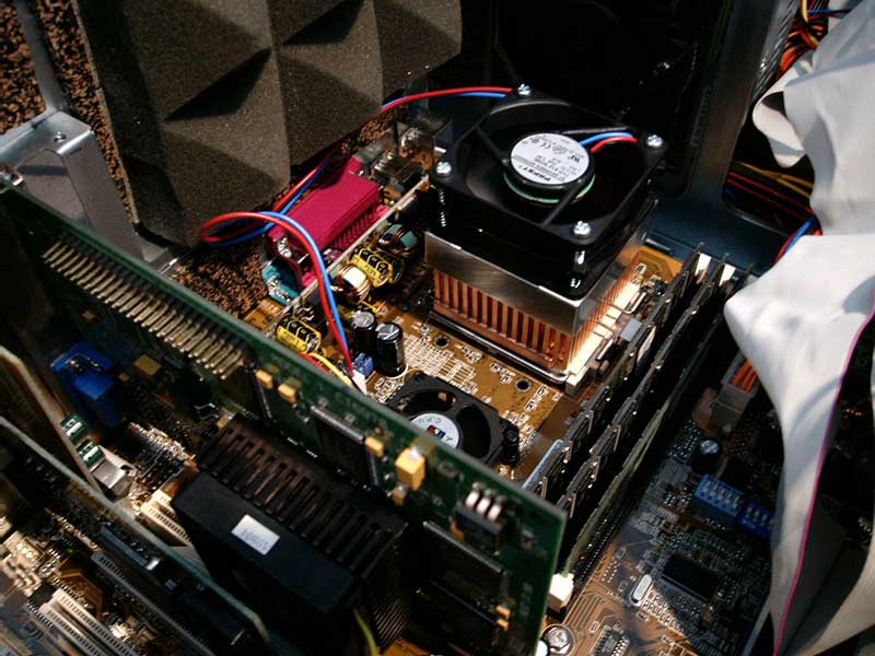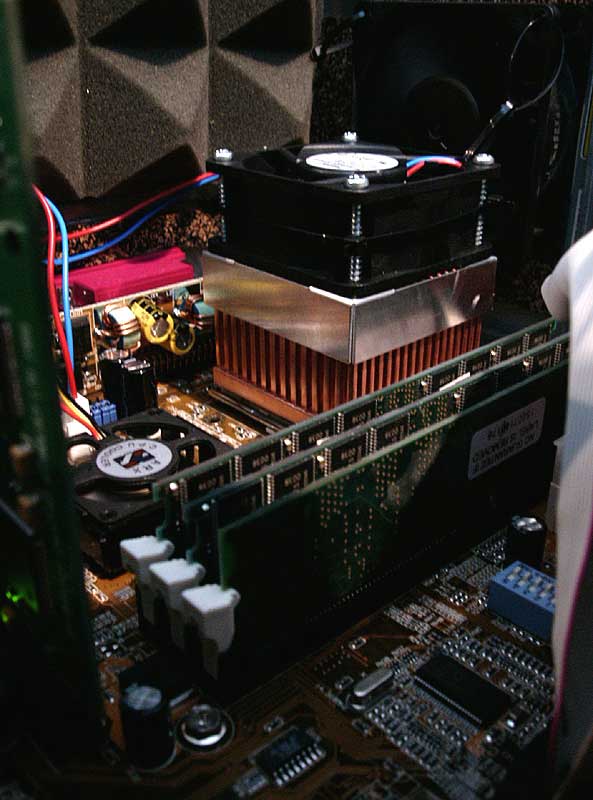 Auf dem 1. Bild sieht man das ganze in einem Silent Big Tower auf dem Motherboard Asus A7V133 verbaut. Ein Nachteil ist das große Gewicht des Kühlkörpers – stolze 450 Gramm. Beim Transport unbedingt demontieren!